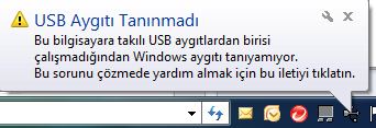 Hemen hemen bir çok kişi kullanmak istediği herhangi bir aygıtı ( USB Bellek, Klavye, Yazıcı v.s.) bilgisayarına taktığında “USB Aygıtı Tanınmadı” hatası ile karşılaşıyor. Tabi sorunun kaynağı tam olarak anlaşılmadığından bir çok kişi farklı yollarda bu hatayı çözmeye çalışıyor. Aslında çözüm için birden fazla yol var. Ancak genel-geçer anlamda en çok kabul gören çözümler konusunda bilgi vermeye çalışacağım.