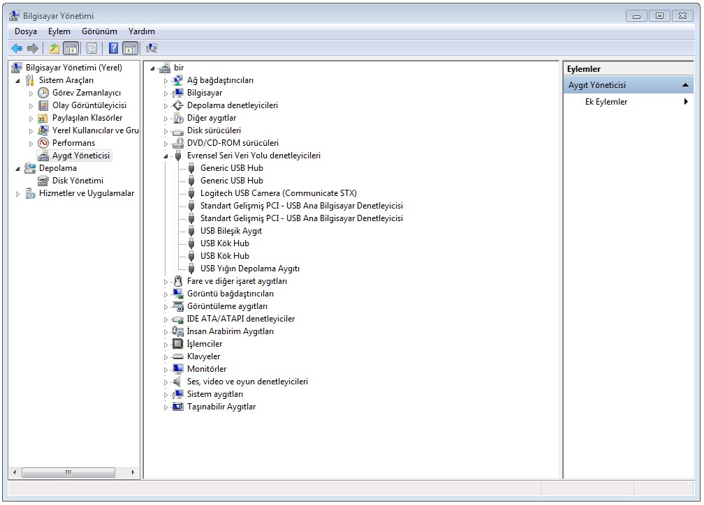 Yeni aldığınız veya normalde kullandığınız bir USB Bellek, Klavye, Yazıcı yada herhangi bir aygıt bu hatayı verdiğinde aşağıdaki yöntemleri kullanarak çözmeyi deneyin. Birincisi Masaüstünden Bilgisayarın üzerine gelip YÖNET diyelim buradan açılan yeni pencereden AYGIT YÖNETİCİSİ’ni seçip Evrensel Veri Yolu Denetleyicilerinde Ünlem/Uyarı işareti olup olmadığını kontrol edelim. Eğer Ünlem/Uyarı işareti varsa “USB Aygıtı Tanınmadı” hatasının sebebi Driver Eksikliğidir. Bilgiayarınıza ilgili USB Driverlerını yüklemeniz gerekiyor. Eğer buraya kadar sorun yoksa yapacağımız işlemleri sıralayalım.
