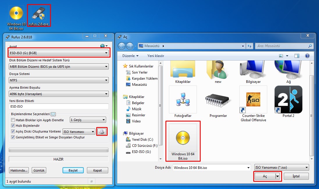 1- 4 GB ve üzerinde USB Belleği bilgisayarınıza takın ve içinde bilgiler varsa yedekleyin ve Windows 10 iso dosyanızı hazrlayın. Yoksa link verebilirim.