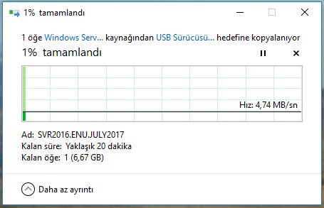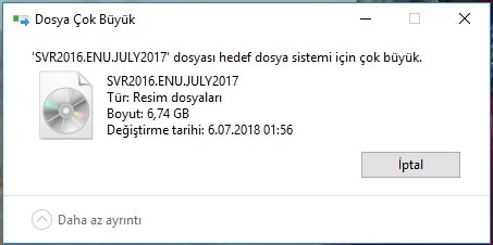 Herkese Merhaba. Bu yazımızda “USB Belleklere Büyük Boyutlu Dosyaları Kopyalama” konusu ile ilgili bilgi vermeye çalışacağım. Bir çoğumuz 4 GB ve üzerinde herhangi bir veriyi (özellikle tek parça film, video, program vs.) USB belleğe kopyalamak istediğimiz zaman “bellek dolu” veya “dosya kaydedilemiyor-kopyalanamıyor” hatası alırız. Örneğin benim 16 GB’lık USB’ye 4,76 GB bir veri aktarmaya kalktığımda “dosyası hedef dosya sistemi için çok büyük” uyarısı alıyorum.