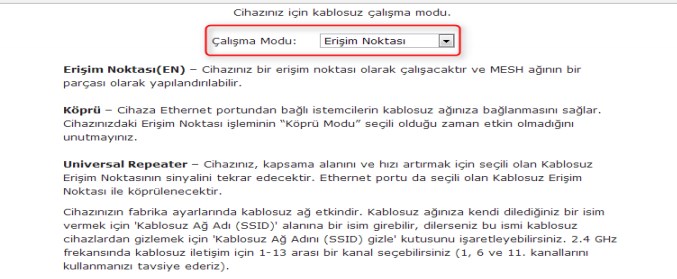 Eğer şöyle bir amacınız varsa; karşıdaki binaya kablosuzdan-wifi’den kabloluya dönüştürmek istiyorum derseniz o zaman karşıdaki binada, evde bulunan Access Pointin çalışma modu >>> KÖPRÜ olacaktır. Eşleştirmeyi yaptığınızda Access Pointen çıkan yuvadan (RJ45) bir ethenernet kablosunu kullanarak evdeki herkese kablolu internet verebilirsiniz. Dilerseniz Switch ile çoğaltabilirsiniz. Hatta tekrar 3. bir Access Point ile kablosuz dağıtabilirsiniz. Ancak çalışma modu köprü yaptığınızda Kablosuz Wifi çalışmaz sadece kablolu verebiliyorsunuz. Umarım anlatabilmişimdir.