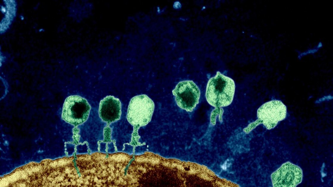 Elektron Mikroskopu ile çekilmiş bir T4 Bakteriyofajın gerçek görüntüsü.