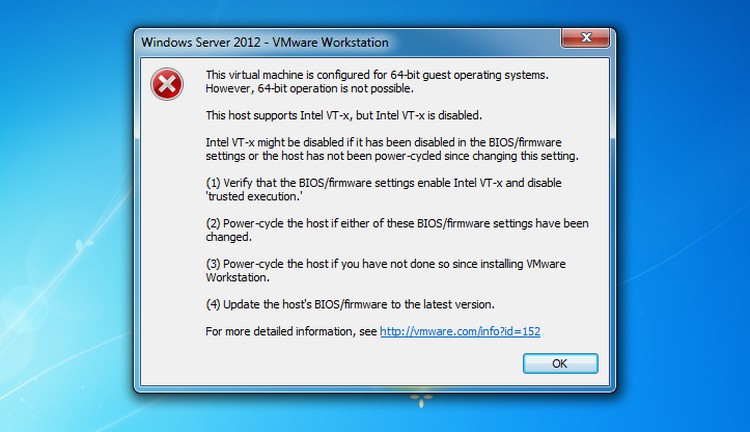VMware Workstation ile Windows Server 2012 Kurmaya çalışırken aşağıdaki gibi bir hata alabiliriz. Bu yazımızda bu hatanın çözümü konusunda kısaca bilgi vereceğim. Kurulum yapılırken alınan hata;