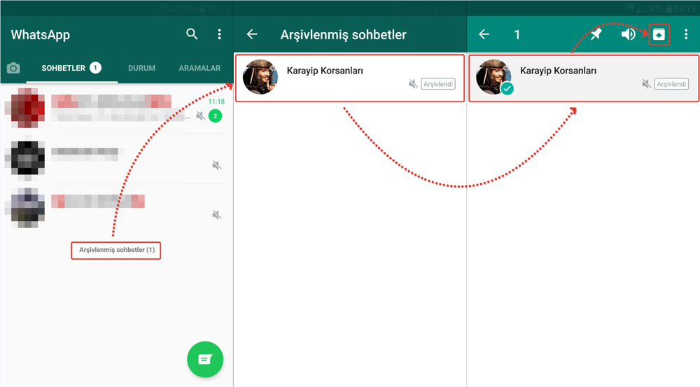 Eğer arşivlediğiniz bir sohbeti arşivleme alanından çıkarmak istiyorsanız arşivlenmiş sohbetler kısmına girip arşivden çıkarmak istediğiniz grubun üzerine basılı tutun ve arşivleme logosuna klikleyin. İşlemimiz kısaca bu kadar.
