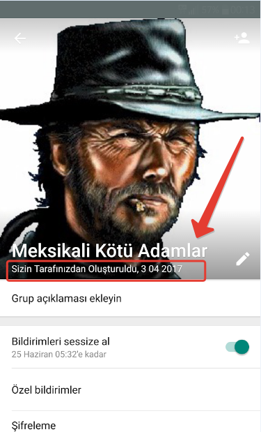 Grup bilgisini seçtikten sonra açılan pencerede Grup Adının hemen altında grubun kim tarafından ve ne zaman oluşturulduğu yazmaktadır.
