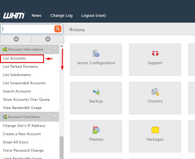 WHM kontrol sistemi üzerinden bayi hesapları açılabilir, kullanıcı hesabı açılabilir, kota bilgileri girilebilir, hesaplar kapatılabilir, hesaplar düzenlenebilir, hesaba bağlı bulunan sitelerin ayarları düzenlenebilir ve cPanel yönetimi ile ilgili ayarlar yapılabilir.