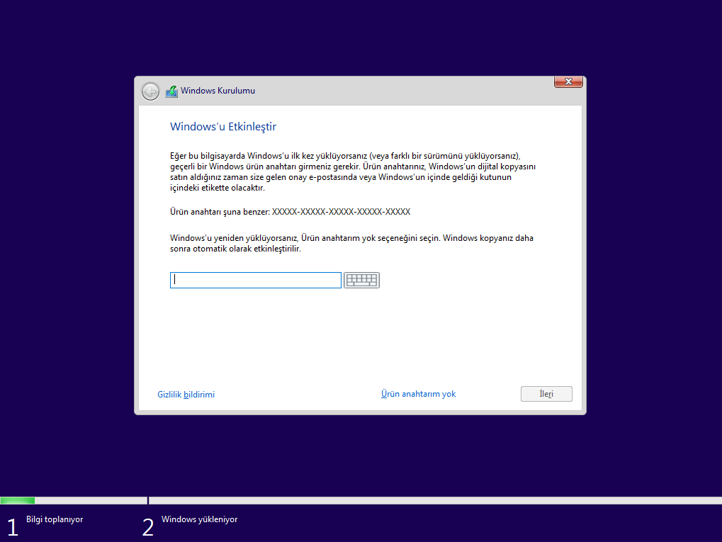 Ayrıca Windows 10 buradan MediaCreationTool programa indirip USB diske yazdırıp yukarıdaki Genel ürün anahtarları Windows 10 kurabilirsiniz.