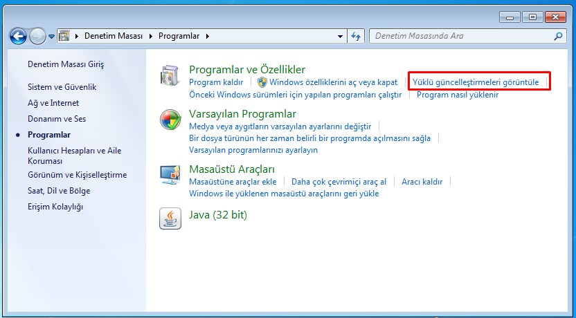 2- Açılan pencerede Yüklü Güncelleştirmeleri Görüntüle seçeneğini seçelim.