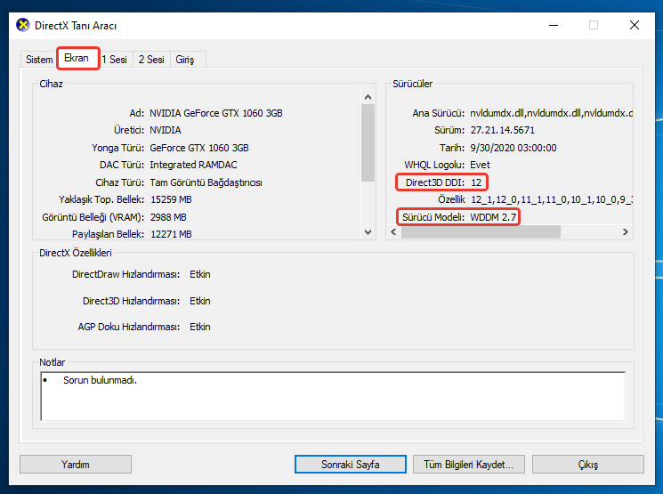 Ekran Kartı: WDDM 2.0 Sürücüsüyle DirectX 12 veya Üzeri ile Uyumlu