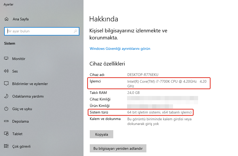 • İşlemci: 1 Gigahertz (GHz) veya Daha Hızlı, 2 veya Daha Fazla Çekirdekli, Uyumlu Bir 64 Bit İşlemci.