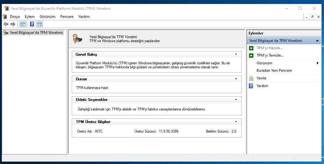 TPM: Güvenilir Platform Modülü (TPM) sürüm 2.0
