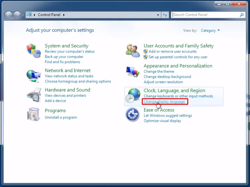 1- Contral Panelden (Denetim Masasından) Change Display Language’yi seçin.