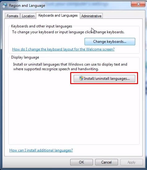 2- Açılan pencereden Install/Uninstall Languages‘i seçin.