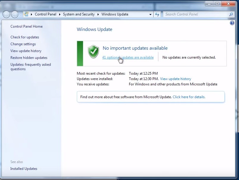 4- Güncelleştime işlemi bittikten sonra Windows Uptade kısmında aşağıdaki gibi bir seçenek olacak. (41 Optional Updates are Available)