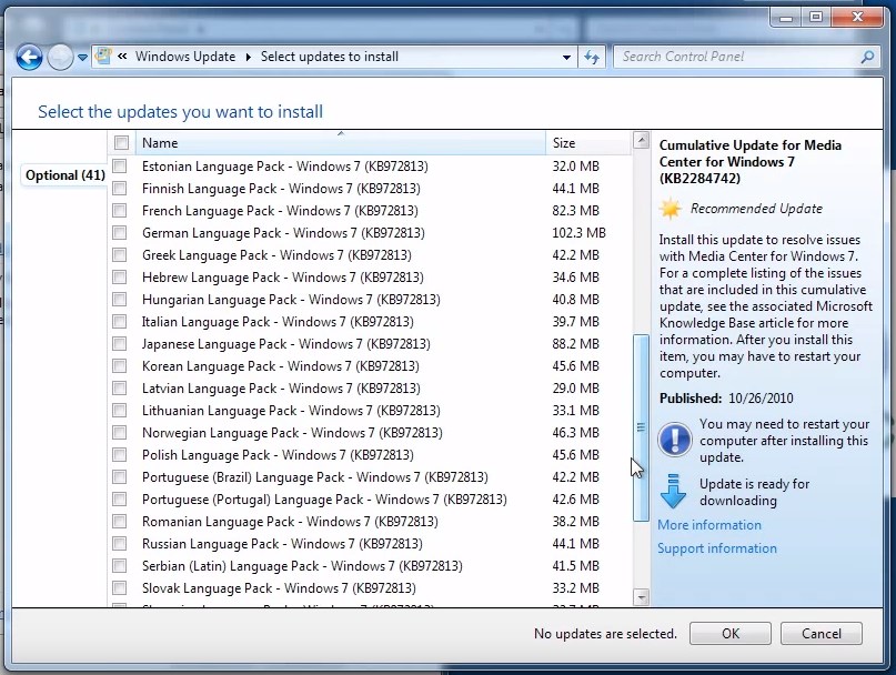 5- Üstteki gibi Optional Updates are Available yazan yeri seçtiğinida aşağıdaki gibi bir liste çıkacak. Bu listeyi bulup OK deyin. Türkçe olacaktır. Yeniden başlattıktan sonra tabi.