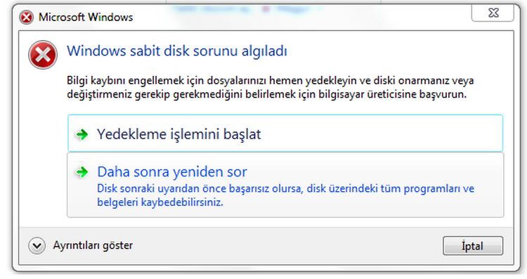 Kullandığınız bilgisayarda “Windows sabit disk sorunu algıladı. Bilgi kaybını engellemek için dosyalarınızı hemen yedekleyin ve diski onarmanız veya değiştirmeniz gerekip gerekmediğini belirlemek için bilgisayar üreticisine başvurun dediğinde” haliyle kalkıp bilgisayar üreticisine gitmeyeceksiniz.