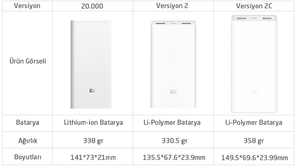 - 1 Adet Xiaomi Mi 20000 mAh Powerbank