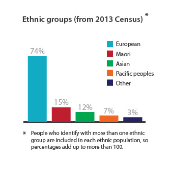 Yeni Zelanda‘da -çeşitli platformlardan elde edilen verilere göre- yaklaşık 4.9 milyon kişi yaşamaktadır. Ülke nüfusunun çoğunluğunu %74’lük oran ile Avrupa kökenliler oluşturmaktadır. Yeni Zelanda‘nın yerli halkı olan Maoriler ise nüfusun yaklaşık %15’ini oluşturmaktadır. Nüfusun geriye kalan %12’’sini Asya ve %7’sini ise Pasifik kökenliler oluşturmaktadır.