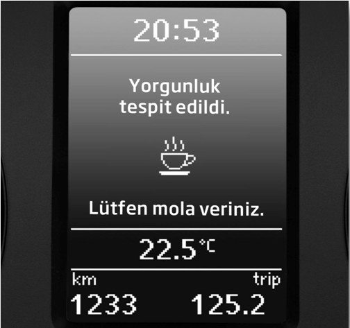 Sistem normal sürüş alışkanlığı dışında farklı tutum algıladığında, yolculuğa ara verilmesi gerektiğini hem çok fonksiyonlu gösterge üzerinde görsel olarak belirtirken hemde sesli olarak sürücüyü uyarır. Bu sayede sistem sürücüye doğru karar vermesi konusunda destek sağlar.