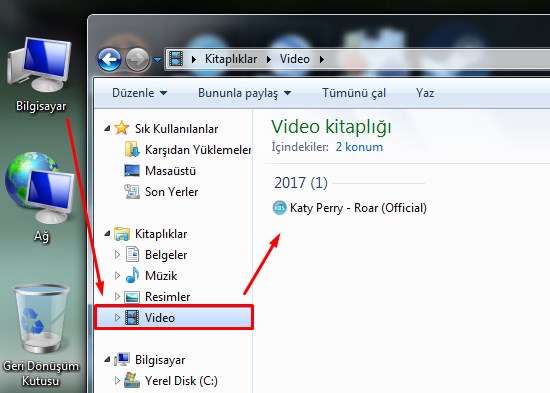 NOT: Standart İndirme Noktası bilgisayarım içindeki Video yazan yerde olacaktır.