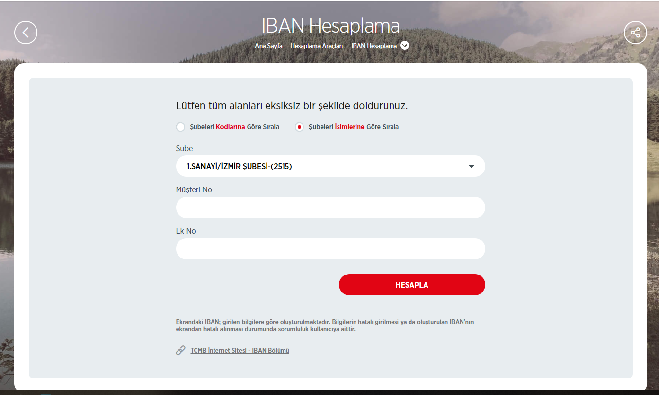 Son olarak eğer Ziraat Bankası IBAN Numarasını öğrenmek istiyorsanız. Burada bulunan linke (tıkla) giderek şubeyi bulduktan sonra Müşteri Numarası yazan kısma Hesap Numarasının ilk 8 rakamını Ek No kısmına ise Hesap Numarasının son 4 rakamını yazıp Hesapla diyelim. Karşımıza IBAN No gelecektir.